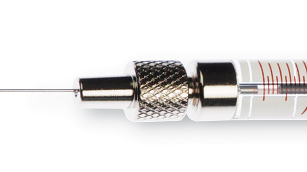 Tato mikrolitrová stříkačka je určena pro dávkování kapalin. Obsahuje vyměnitelnou jehlu s provedením KH (Knurleb Hub). Píst stříkačky se pohybuje přímo v jehle. Stříkačka nemá žádný mrtvý objem.