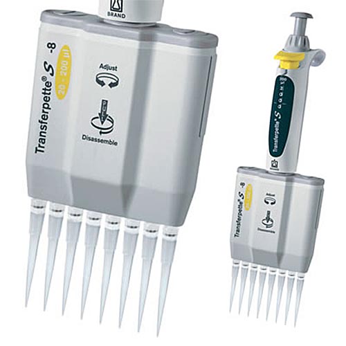 Mikropipety Transferpette S multikanálové s nastavitelným objemem centrálně umístěné pipetovací tlačítko umožňuje hladký a spolehlivý chod pístu jednoduché nastavení požadovaného objemu pomocí jedné ruky i v rukavicích uzamykatelné nastavení pipetovacího objemu ergonomicky tvarovaná