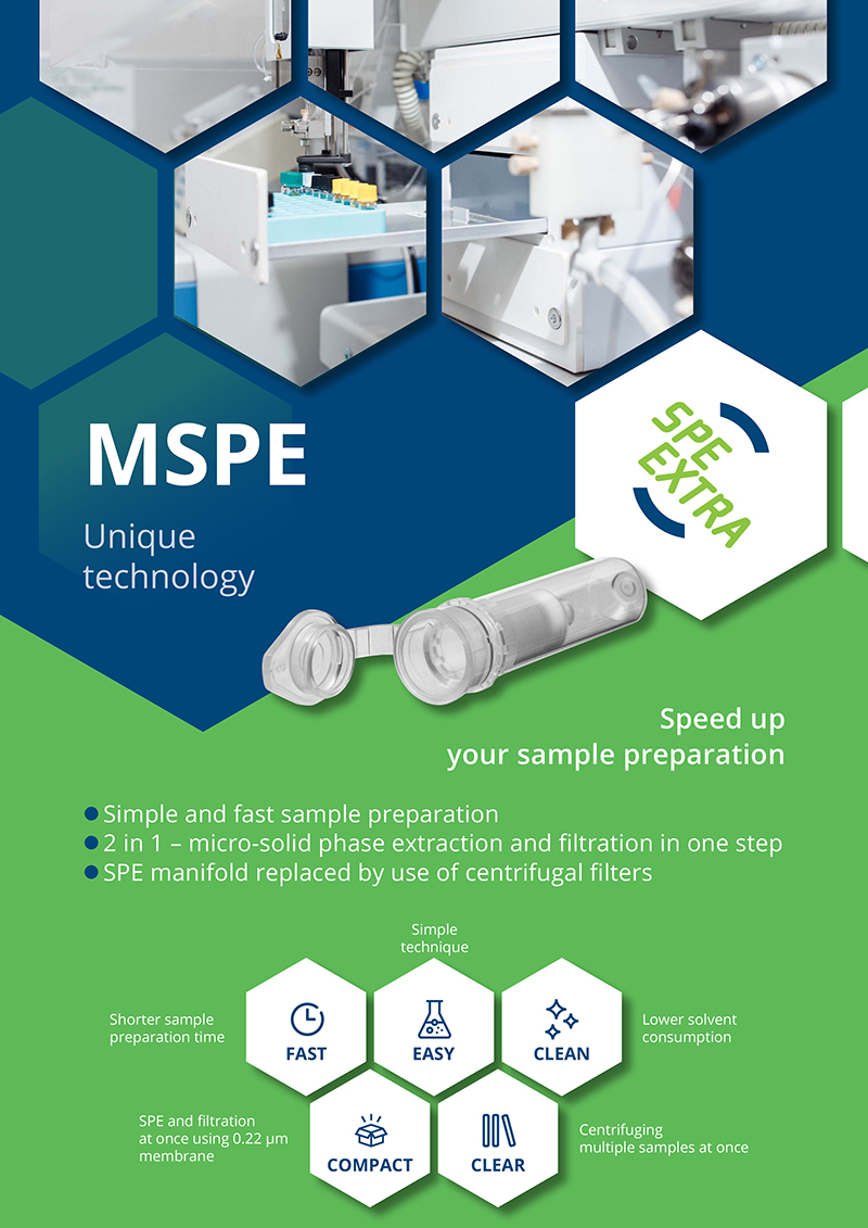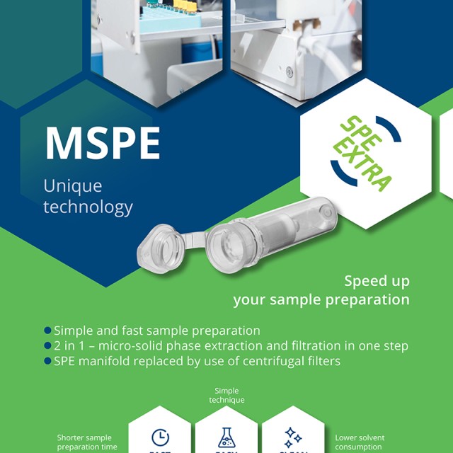 Mikrospinové kolony (MSPE) se používají k předúpravě vzorků jako náhrada za SPE kolonky. MSPE kolona sestává z vnitřního mikrospinového filtru s 0.22 mikronovou membránou, nad kterou je uložen sorbent a vnější centrifugační zkumavky. Membrána může být vyrobena z nylonu, PTFE (hydrofilní a hydrofobní), PVDF a acetylované celulózy. Je to jednoduchá a rychlá metoda pro přeúpravu vzorků, která používá 2 v 1, filtrace přes membránu a extrakce na sorbentu v jednom kroku. MSPE kolony mají široké využití v klinické biochemii, toxikologii, neuroimunologii a biotechnologii. Pro více informací nás neváhejte kontaktovat.