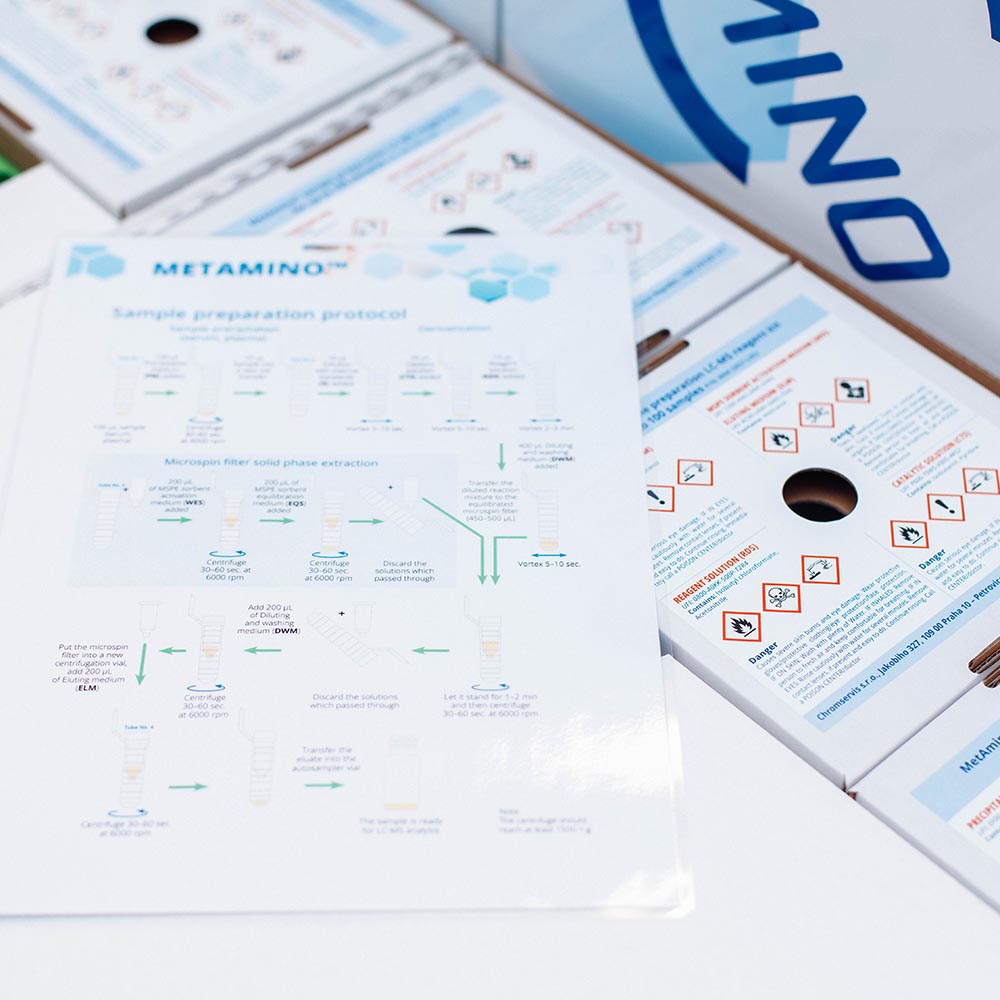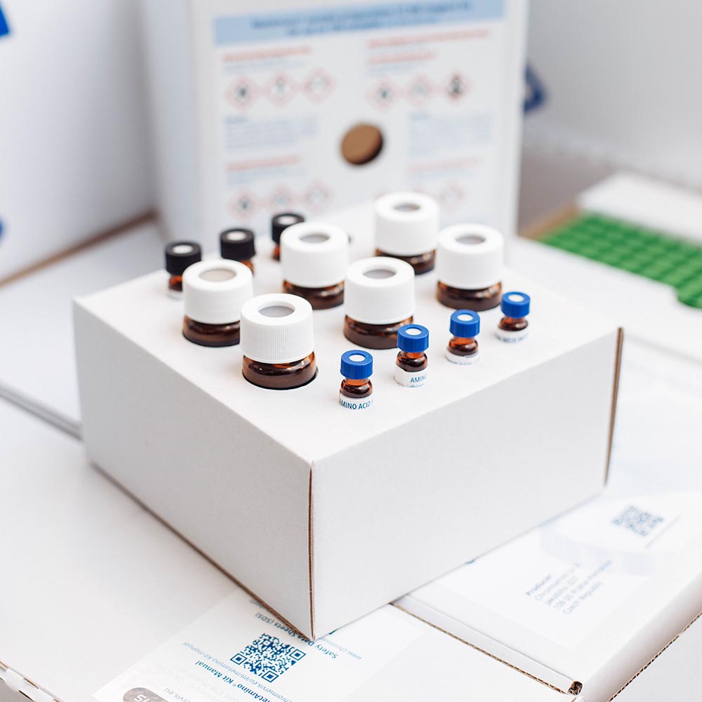 Soupravy MetAmino® nabízejí snadnou metodu přípravy vzorků pro vaši analýzu LC-MS nebo GC-MS. Soupravy MetAmino® obsahují derivatizační činidla a veškeré příslušenství pro přípravu vzorku . Eliminují tak časově náročné postupy přípravy vzorků.