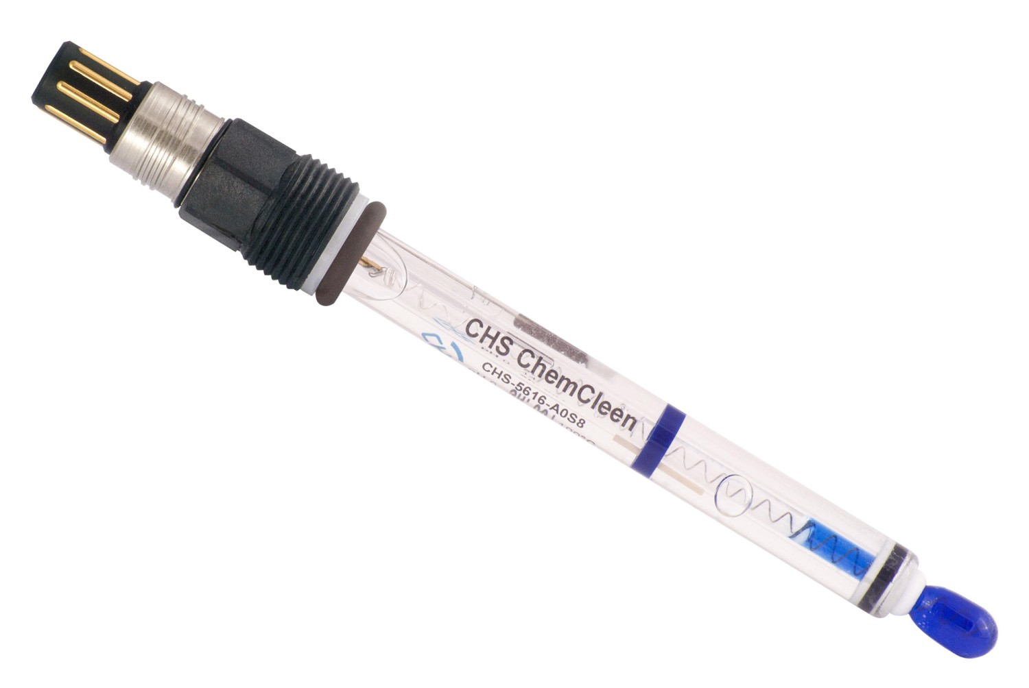 Procesní pH senzor CHS ChemCleen VP vhodná pro kaly, sedimenty, média, kde se elektrody zanášejí a aplikace s oplachem elektrod vynikající senzor pro galvanické lázně speciální kruhová teflonová diafragma teplotní čidlo Pt100