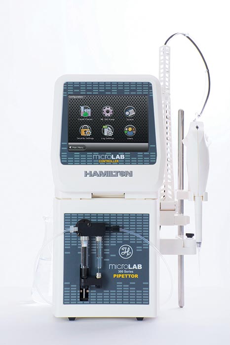 Dávkovač (pipetor) Microlab 300 (Hamilton) je pipetovací systém, který minimalizuje chyby při pipetování a zajišťuje konzistenci operačních postupů v laboratoři. Mezi hlavní funkce patří: