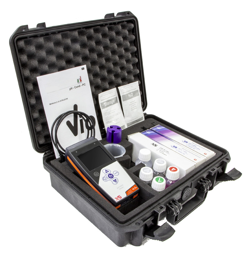 REVIO kompletní sada obsahuje multimetr, sondy CHS ChemFlex sensor S7, CHS CondiGo 30W s teplotním čídlem a 1 m kabelem, teplotní externí sondu s 3 m kabelem, pH, vodivostní, DO pufry, napájecí adaptér, software Data-link, příslušenství v kufříku.