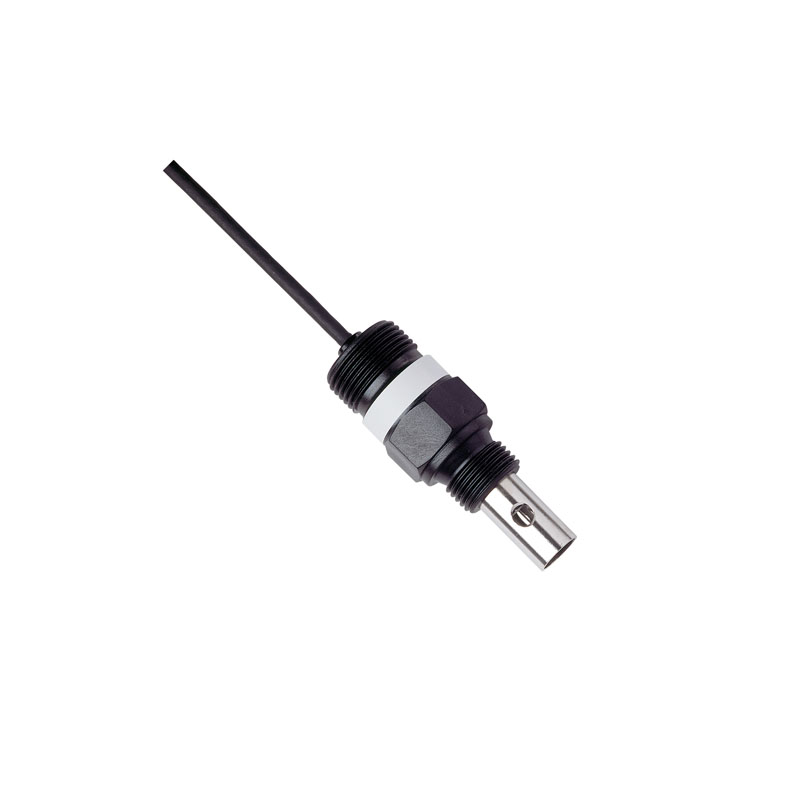 Kompaktní 2-elektrodová sonda s koaxiálními nerezovými elektrodami, integrovaným snímačem teploty a pevným kabelem.