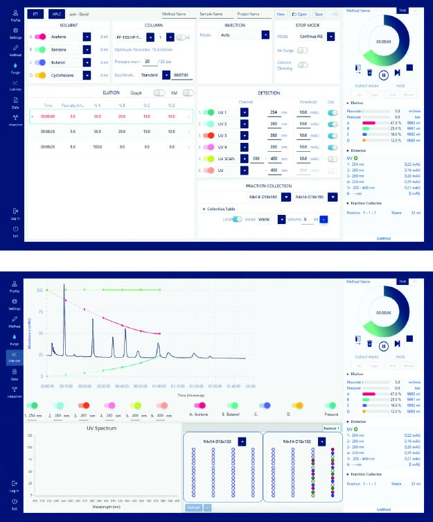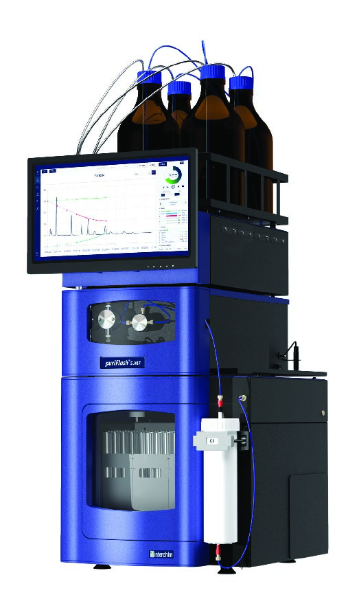 Interchim uvedl na trh novou řadu Flash chromatografů puriFlash, která soustředí inovované technologie a přináší tak výkonný systém ulehčující uživatelům hodně práce. Flash chromatograf je konstruovaný pro větší množství purifikované látky. Výkonné vysokotlaké LC pumpy puriFlash® XS 5.007 nabízí přesnost, linearitu a opakovatelnost v celém rozsahu na takové úrovni, že je možné provádět i separace komplexních vzorků. Nemusíte být expert na chromatografii, aplikace Genius vám pomůže automaticky nastavit nejvhodnější purifikaci.