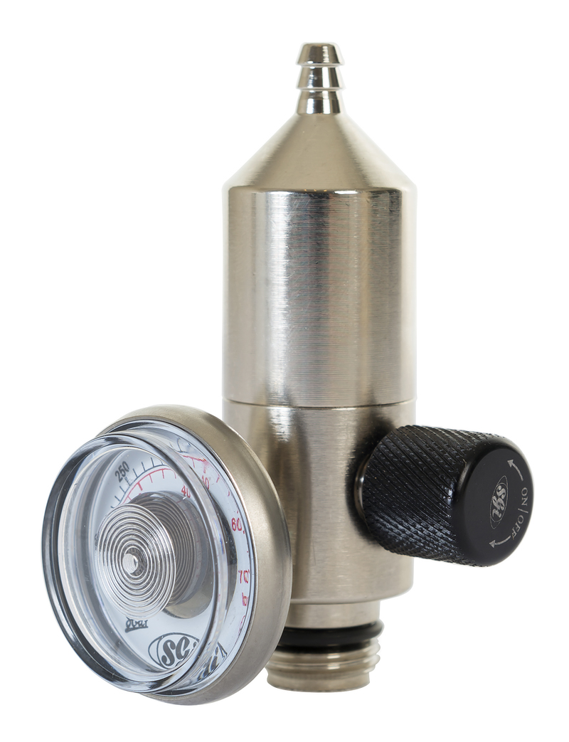 Regulátor tlaku pro 34/58/110L jednorázová tl.láhve, chromovaná mosaz, 0,5 l/m