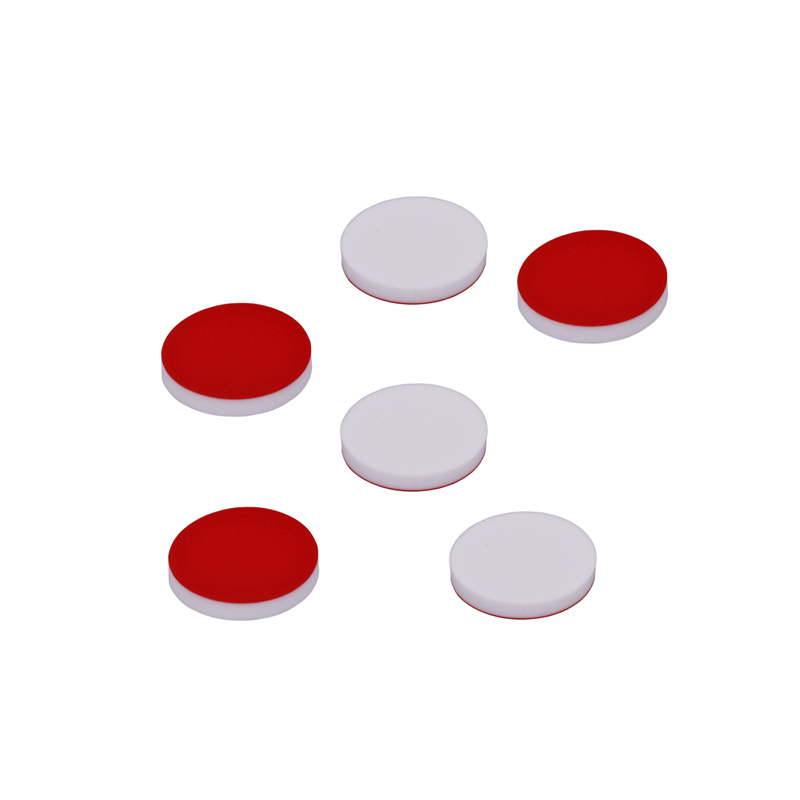 Septa 9mm, červený PTFE/bílý silikon, pro víčka 9–425, pro ROBO vialky
