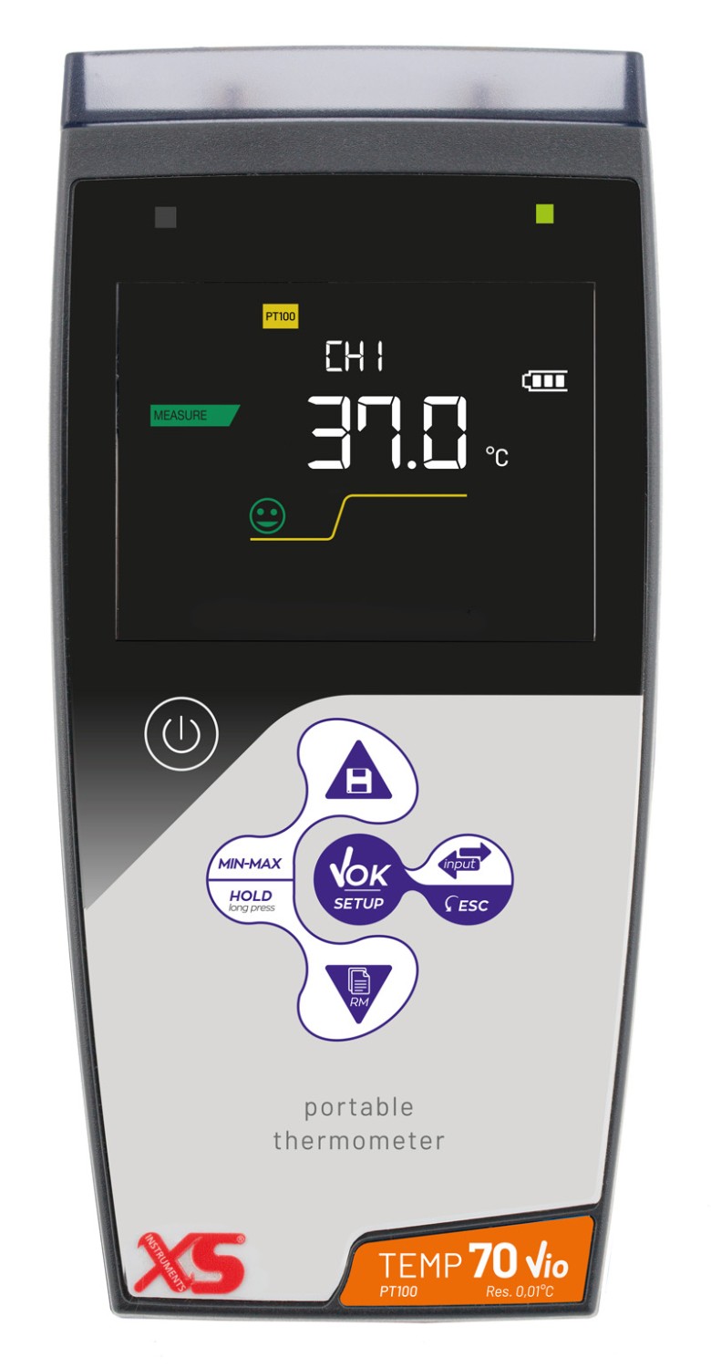 Teploměry Temp 7 Basic a Temp 7 Professional řady XS jsou mikroprocesorově řízené teploměry (mikroprocesor ASIC), které nabízejí celou řadu inovativních funkcí při zachování jednoduchého ovládání. Teploměr je vybavený sondou Pt100 RTD s rozsahem měření –200 až +999°C.
