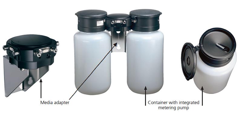 Plně automatická kalibrace s možností nastavení jejího intervalu uživatelem probíhá za plného provozu. Dva kalibrační pufry jsou čerpány do kalibrační komory armatury. Takže stačí pouze doplňovat pufry do kalibračních nádob.