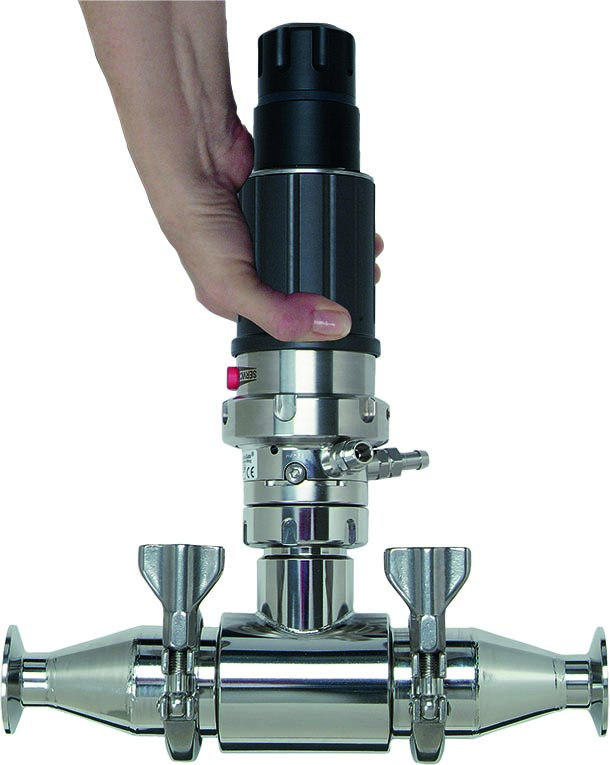 Systém SensoGate® zajišťuje efektivní a hygienické oplachování senzoru médiem díky tangenciální geometrii trysek a rychlému proudění.