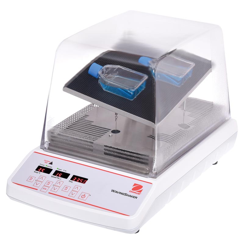 OHAUS Incubating Rocking and Waving Shakers are designed to incubate samples from 5°C above ambient to 65°C to provide accurate and repeatable results. Rocking shakers provide a see-saw like motion, while waving shakers offer a smooth, low-foaming threedimensional “wave” motion. All models feature LED displays with touchpad controls.