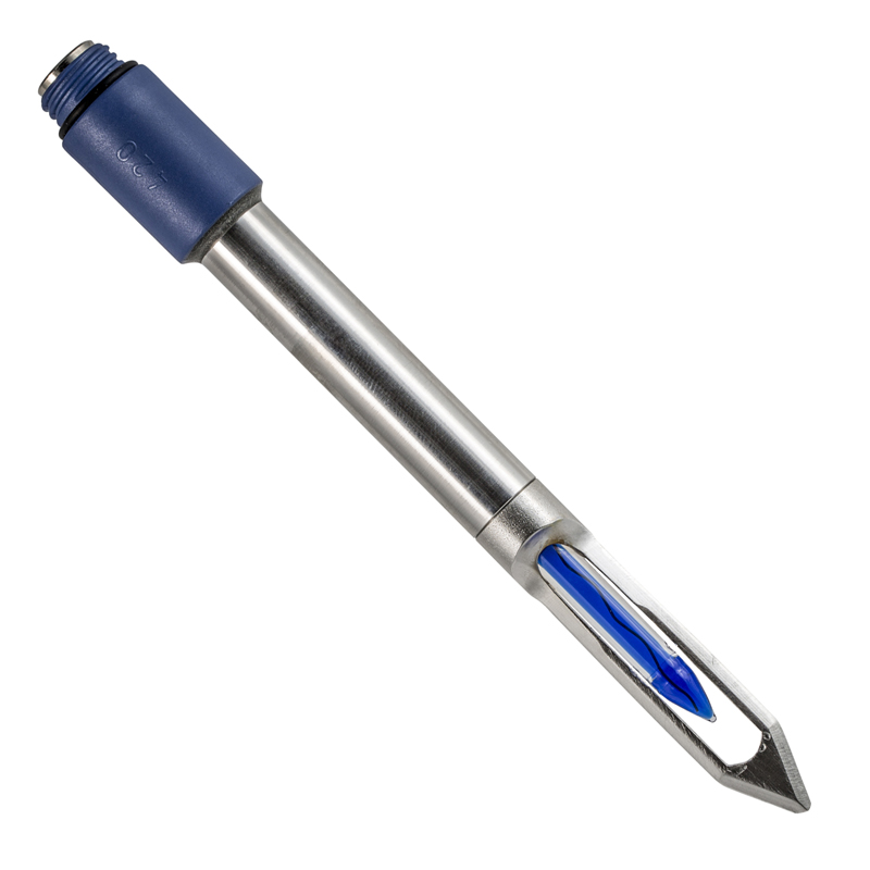 рН-электрод в сочетании с винтовой головкой S7. Стальной корпус со сменным лезвием. Размеры (ДхШ) 35×6 мм. Наполнен полимером, не требует обслуживания. Благодаря наконечнику 6 мм идеально подходит для мяса. Для измерения проникновения.